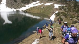Sense preses vam enfilar la nostra ruta, cap al pla de Siscaró, amb un refugi lliure a l’esquerra, per anar pujant tot gaudint de les vistes i descansar, fins al llac de baix, on vam fer l’esmorzar i paradeta. Després el recorregut pels 3 llacs, amb més pujada al costat del mateix riu, fins trobar diverses pales de neu que ens esperàven abans de fondre’s definitivament amb la calor estiuenca.