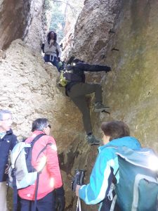 A l’excursió van participar 23 persones, que amb un clima fresquet però amb sol, van fer el recorregut previst per la Serra de Major del Montsant, al nord del Priorat: grau de Barrots, Piló dels Senyalets, La Cogulla (100 cims), Clot del Cirer i grau de Salfores. Va ser un recorregut per passos inimaginables entre cingles (graus), corriols i camins de petit i gran recorregut (PR i GR), i en el que van gaudir d’unes vistes espectaculars i de llocs màgics. Només va faltar la vista cap el Pirineu, ja que el cel enteranyinat cap el nord ho va impedir.