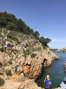 El diumenge 15 d’abril vam començar l’etapa a L’Escala. Vam anar a prop de la costa durant 8 Km. en un tram gairebé pla i després ens vam trobar amb un camí més pedregós i amb més desnivell . En total vam caminar 18,5 Km i desnivell +333 -325. El dia va ser esplèndid.