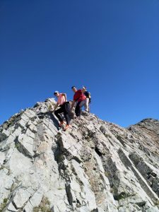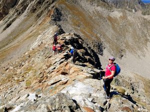 Després de coronar el pic Freser ja quedava a la vista el tram més delicat i potser més divertit de tota l’excursió que era la cresta fins arribar al pic de l’infern (2.870 m) que seria l’últim dels cims del dia i des del qual hi ha unes vistes espectaculars d’un indret molt bonic que són els llacs de Carançà.