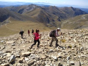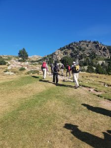 Des del cim de l’infern i, un cop assolits tots els cims de la jornada, els excursionistes van començar el descens fins arribar a la cabana de Tirapits on van dinar i després com la meteorologia i el paisatge acompanyaven van poder gaudir d’una estona de relax, recolliment o migdiada estirats sobre l’herba, ja només quedaven unes dues hores de camí seguint el GR11 fins a retornar als cotxes on van arribar al cap de 7 hores i mitja, 12 km i un desnivell de 1.100 metres acumulats des de l’inici de l’excursió.