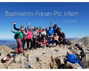 A les 9.30 del matí un total de 18 excursionistes van iniciar l’excursió des del revolt de la carretera d’accés a les pistes d’esquí de Vallter 2.000 conegut com el parking del refugi en direcció al primer de tres cims que es coronarien aquell dia, Bastiments (2.881 m) amb una climatologia espectacularment bona i que va permetre durant l’ascenció contemplar clarament tant Montserrat com el mar i el golf de Roses. Un cop al cim de Bastiments i després d’un petit respir el grup es va dirigir cap al segon cim de la jornada, el cim del Freser (2.835 m), per una carena molt exigent físicament.