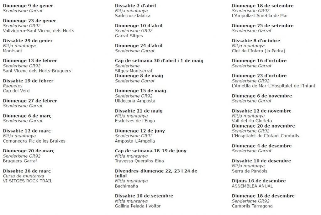 Calendari Centre Excursionista de Sitges 2022 1 comentari / General / Per Joan Tutusaus Ja tenim a disposició el calendari de sortides pel 2022, que dependrà de la situació epidemiològica. El podeu consultar a l’apartat Calendari del nostre web: https://excsitges.com/calendari-2/ Comparteix això: Feu clic per compartir al Facebook (S'obre en una nova finestra) Facebook Feu clic per compartir a X (S'obre en una nova finestra) X Fes clic per compartir al Linkedin (S'obre en una nova finestra) LinkedIn Feu clic per compartir al Telegram (S'obre en una nova finestra) Telegram Feu clic per compartir al WhatsApp (S'obre en una nova finestra) WhatsApp Feu clic per enviar un enllaç per correu electrònic a un amic (S'obre en una nova finestra) Correu electrònic Feu clic per imprimir (S'obre en una nova finestra) Imprimeix